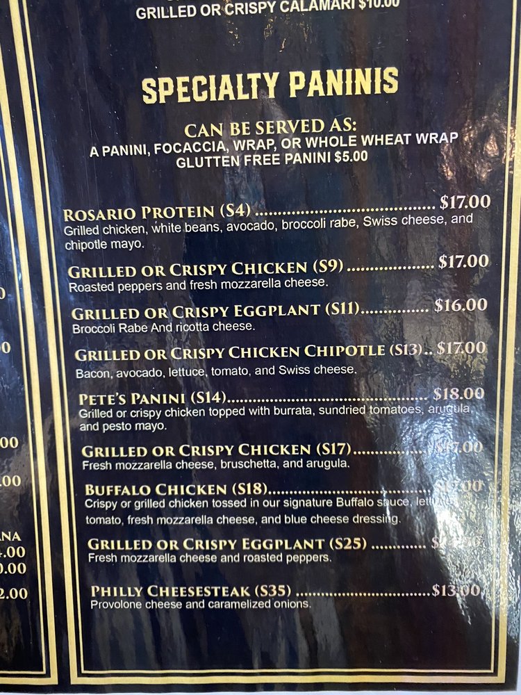 For entrees, the Gamberoni Oreganata showcases jumbo shrimp in a savory white sauce, while the Grilled Center Cut Pork Chop brings a flavorful kick with spicy cherry peppers. Vegetarian options abound, ensuring everyone finds a dish to adore.